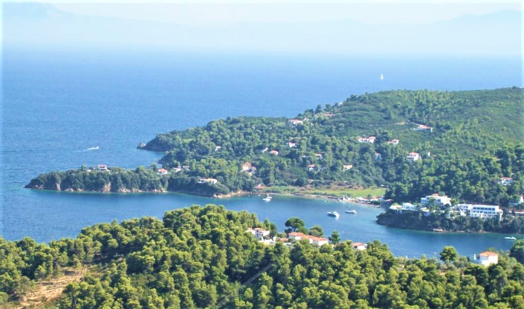 Orchard Villa Skiathos, across Sklithri beach (r.) to Cape Kalamaki and Kanapitsa beach