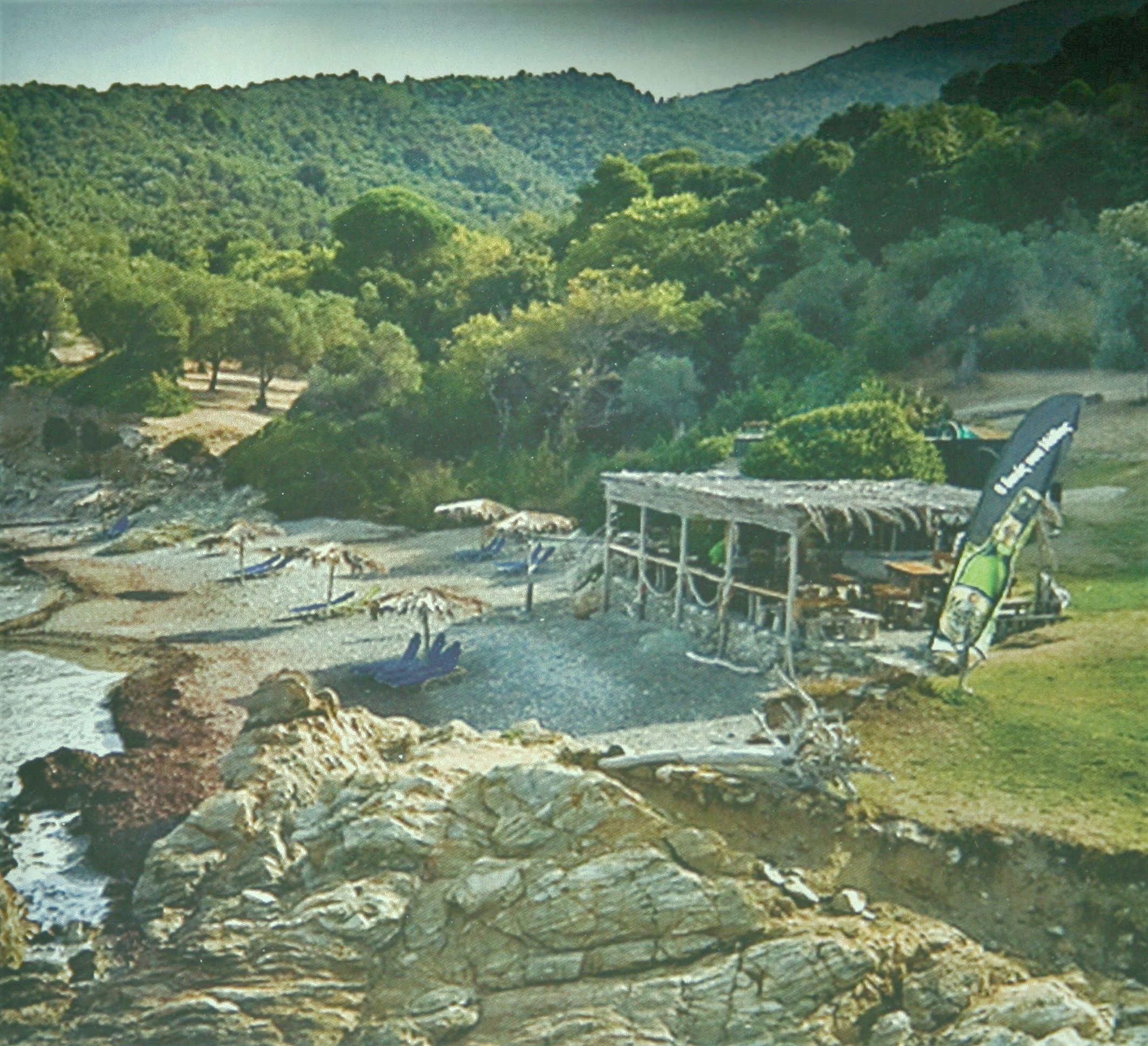 Costa and Gaby run the water sports beside Nikos Nikolaos’ expertly-run taverna with its beach-side terrace and views, which grew out of an original stable on the meadow - our traditional pit-stop with friends, when we can drag ourselves away from the villa. But sadly no longer the ‘bombas’ of ‘laïko’ retsina (see ‘O-V Skiathos Guide’ part 3) we enjoyed there over many years with the sadly late and certainly great Richard Buchanan-Dunlop of fond memory (family memorial bench and his original artist’s studio/villa are on the Kalamaki road above neighbouring Rigas Beach)