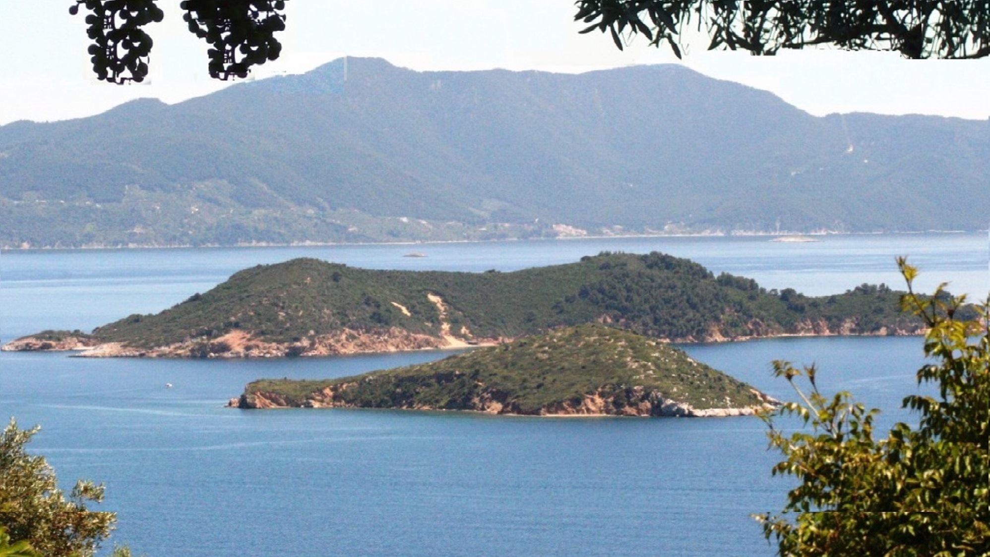 4 of the 7 Skiathos bay islands from Orchard Villa pool ... Marengo, Arkos, Panormos / Skopelos