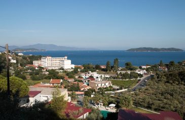 Orchard Villa above Achladies beach, from Kanapitsa beach (Skiathos village far r.)