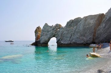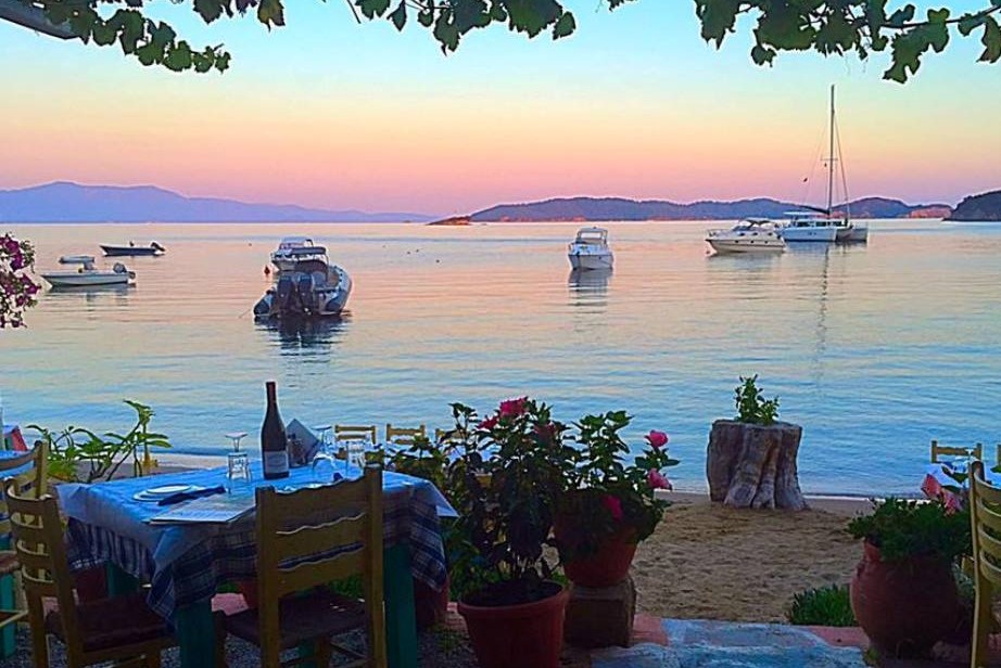 Skiathos N. coast, unique Tarsanas beach and olive-grove taverna