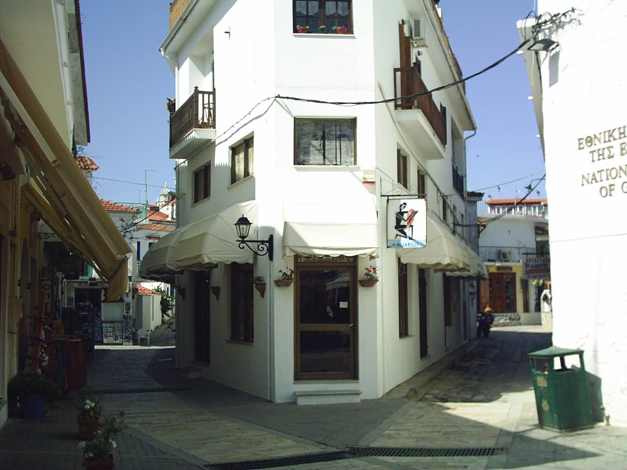 Above Skiathos old harbour - legendary 'Chicken George' grill on 'The Steps'